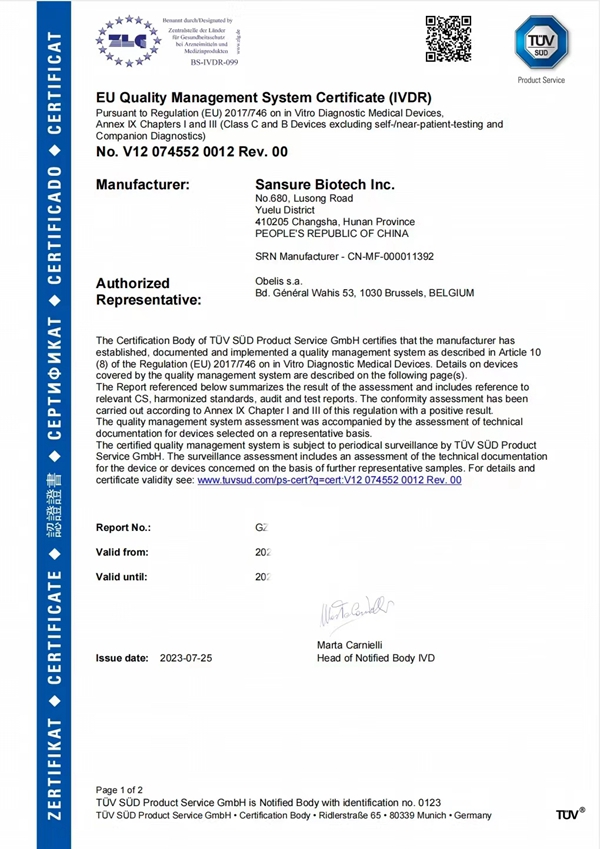 此次必一运动生物HPV13+2核酸检测试剂获得CE IVDR认证,是公司产品性能及国际化质量体系升级的重要成果,奠定了公司在欧盟市场的先发竞争优势,扩展了公司产品的市场覆盖范围,为进一步拓展海外客户群提供了强有力支持。