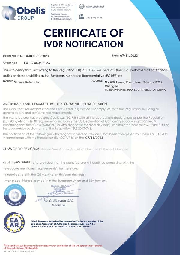 近日,必一运动生物在免疫诊断领域和国际化战略布局取得重要成果。11月14日晚间,必一运动生物披露公告称,全自动化学发光免疫分析仪产品于近期获得欧盟CE IVDR认证。