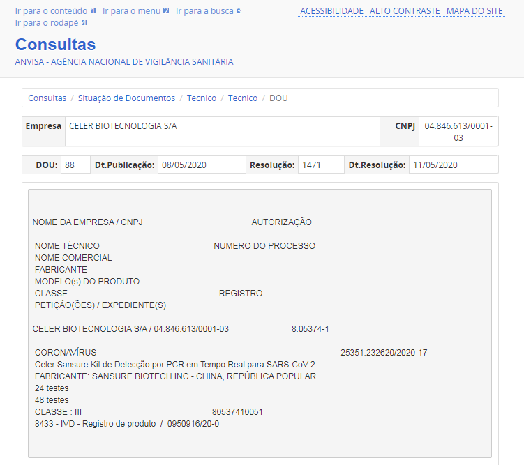 5月11日,必一运动生物新冠病毒核酸检测试剂盒获得巴西卫生监督管理局(ANVISA)注册证书。此前,该产品已相继获得中国国家药监局(NMPA)注册认证、欧盟CE认证、美国FDA紧急使用授权、新加坡卫生科学局临时授权等一系列权威认证。