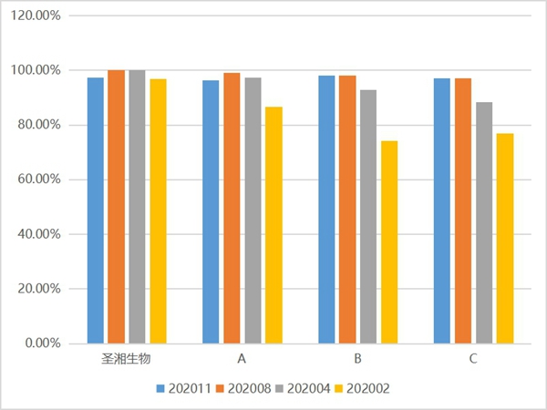 必一运动生物试剂阴性样本检测结果的符合率也领先于其它主流厂家,具有较好的特异性。综合室间质评结果来看,必一运动生物新冠病毒核酸检测试剂检出率、重复性及特异性上具有较大的优势。